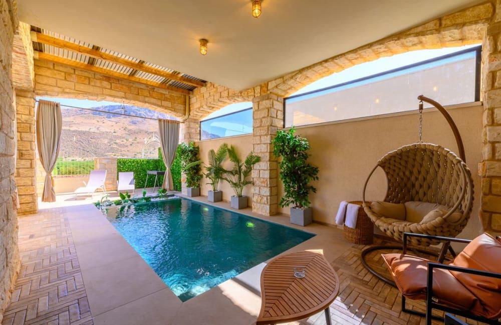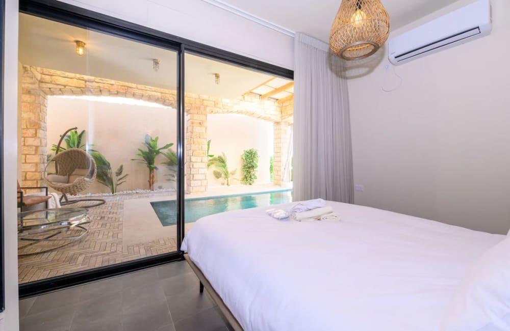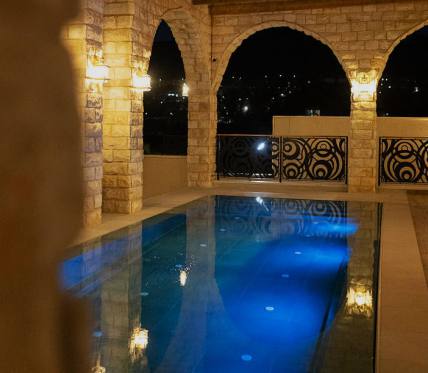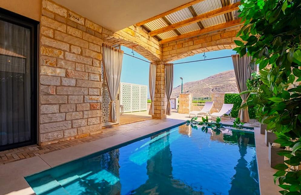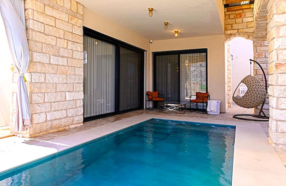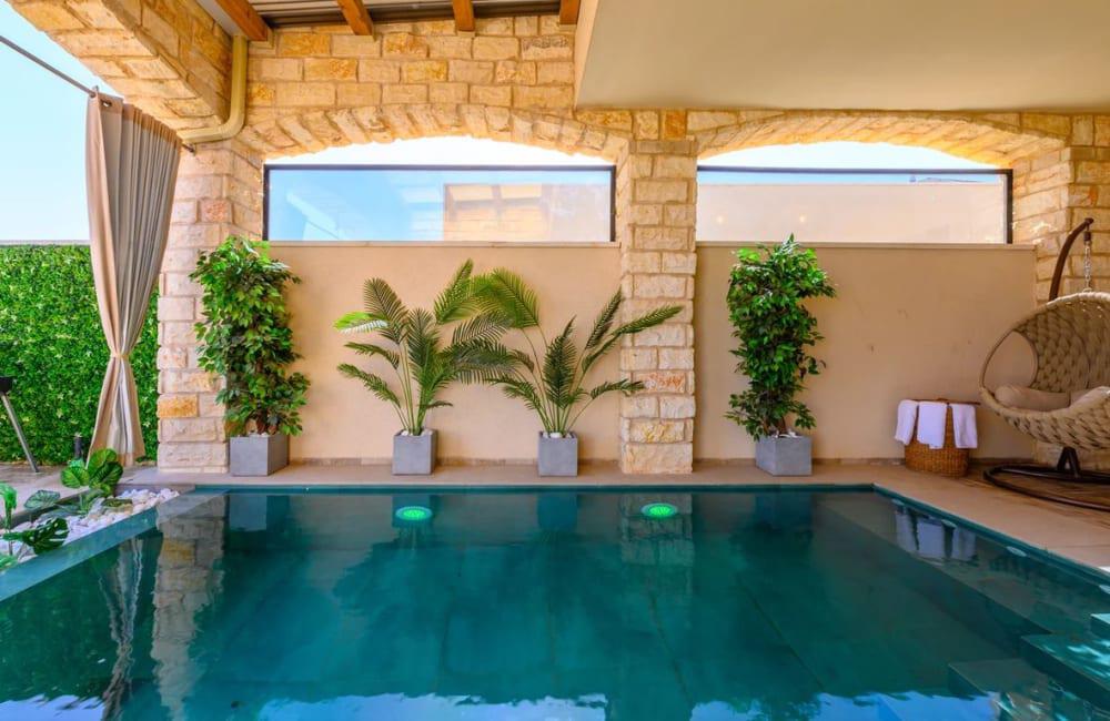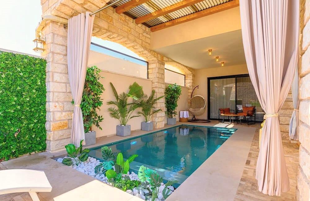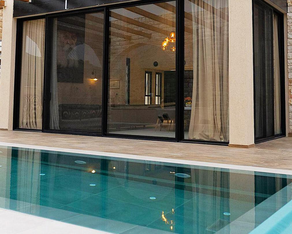 לכל סוויטה במתחם יש גם בריכה פרטית – מחוממת ומקורה בחורף בחצר מסודרת ומפנק המציעה גם ריהוט גן, ערסל ופינות ישיבה, פינת ברביקיו ותאורה לשעות הערב.