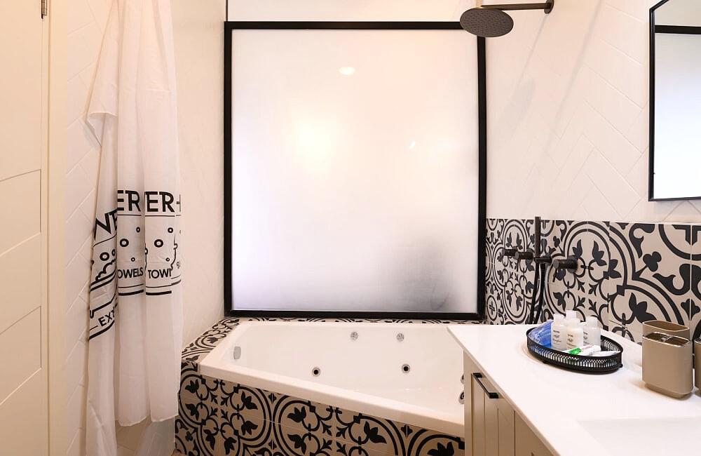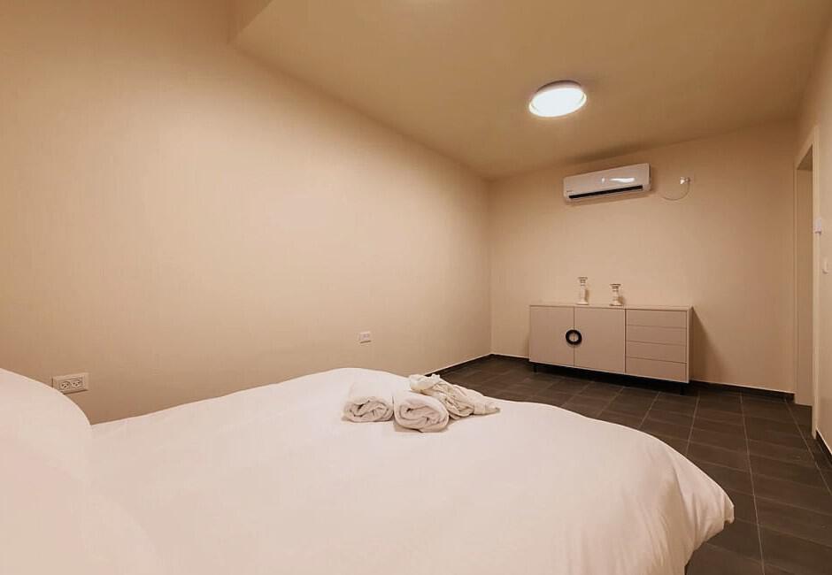 במפלס התחתון - 2 חדרי שינה, 1 הוא חדר מאסטר זוגי עם חדר רחצה פרטי וחדר שינה נוסף עם 2 מיטות יחיד (ממ"ד).